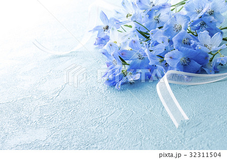 花 花束 デルフィニューム プラチナブルー