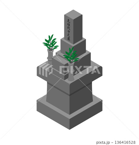 榊が供えられた和型墓石と先祖代々の墓のイラスト素材