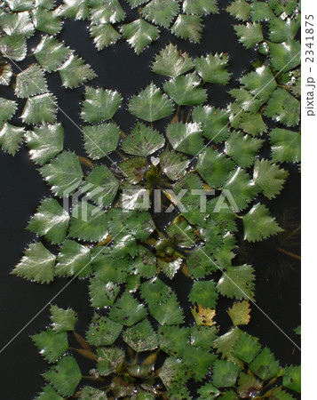 池の水面のヒシの葉の模様