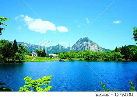 新潟 糸魚川の景勝地 高浪の池と湖面に映る「明星山(みょうじょうやま)」 糸魚川ジオパーク