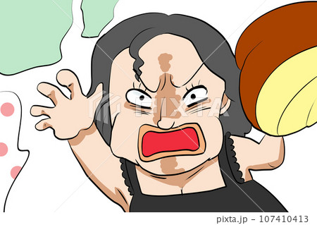 ヒステリックに怒って拳を振り上げるおばさん