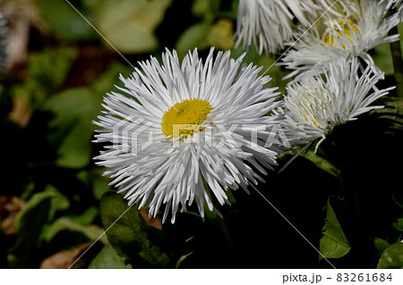 三鷹中原に咲く白いデイジー(ヒナギク)の花