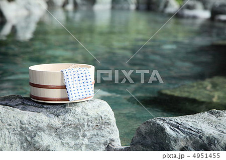 玉石の上の桶と手ぬぐい