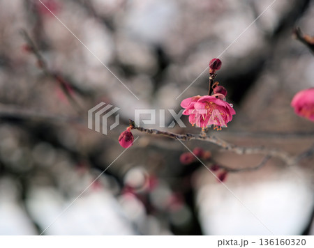 寒い2月に咲き始めた美しい紅梅「緋の司(ヒノツカサ)」