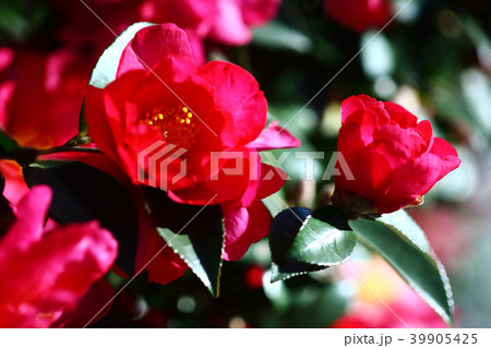 紅赤色の花咲く、サザンカ