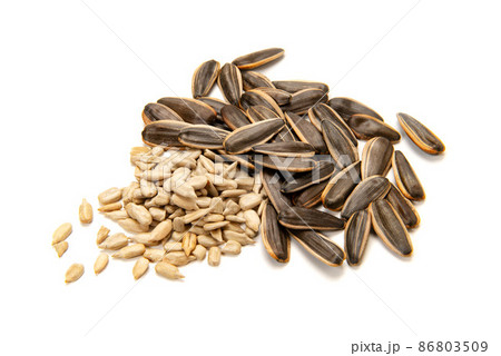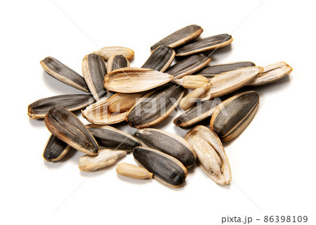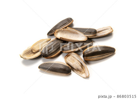 白い背景にヒマワリの種