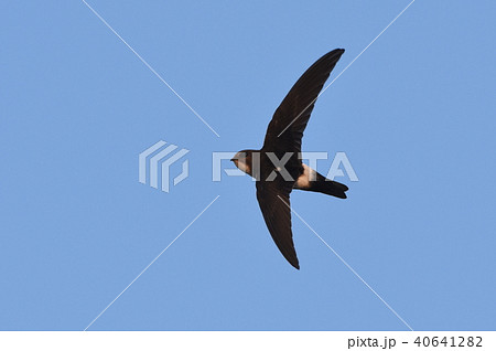 青空バックに飛翔するヒメアマツバメ