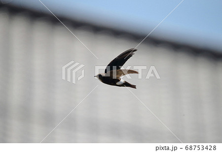 建物の近くを飛翔するヒメアマツバメ