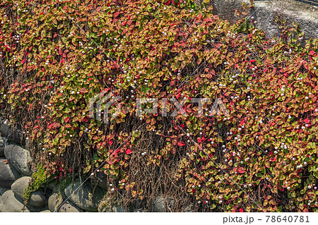 赤く紅葉したヒメツルソバ(姫蔓蕎麦)の葉と花