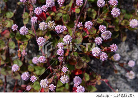 一面に広がるタデ科の多年草丸い花が咲くヒメツルソバ