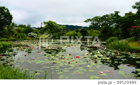 星ヶ丘公園 水面を彩る睡蓮 梅雨の晴れ間 (高知県 三原村)