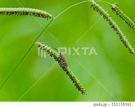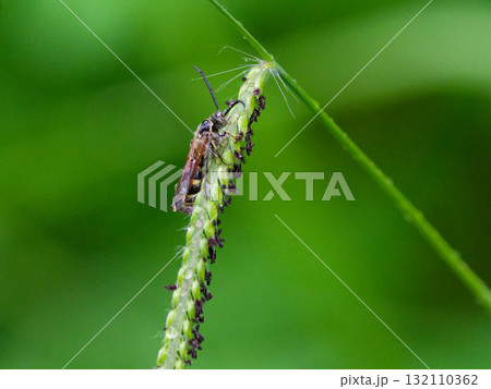 イネ科シマスズメノヒエの穂に止まるツチバチ科ヒメハラナガツチバチ
