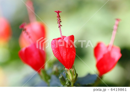下向きの緋赤色の花熱帯アメリカ原産のウナズキヒメフヨウ