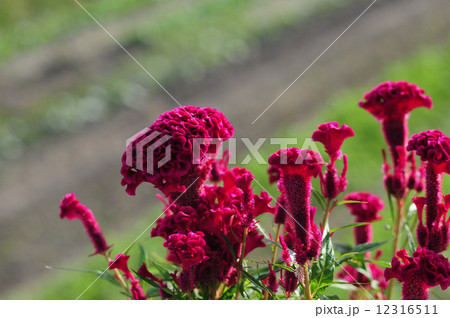 赤いケイトウの花