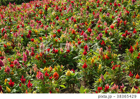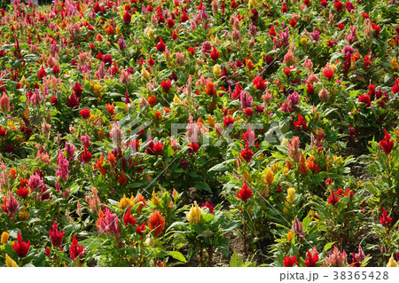 オレンジ色の花が咲いた群生する草花ケイトウ