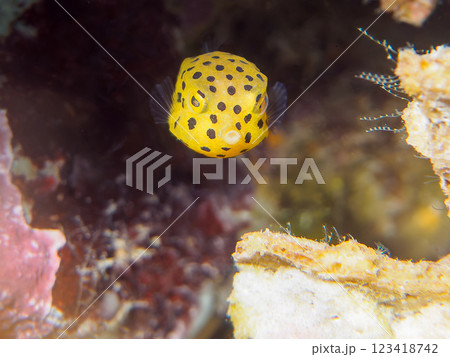 可愛いミナミハコフグ(ハコフグ科)の幼魚。 静岡県伊豆半島賀茂郡南伊豆町中木ヒリゾ浜2024年