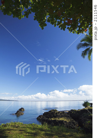 ハワイ島ヒロ湾の緑と青空