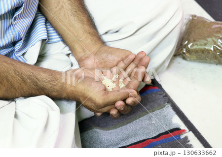 Hands Holding Rice Grains in Hindu Ritual