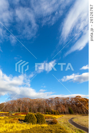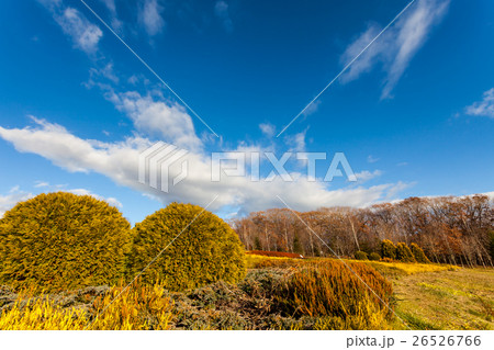 秋のヒースガーデンと青空
