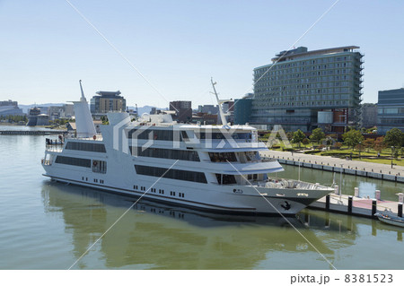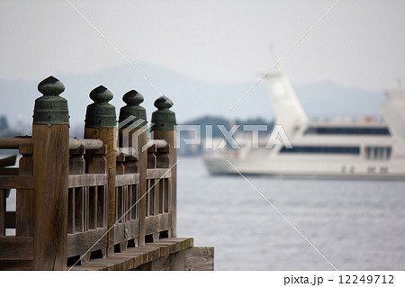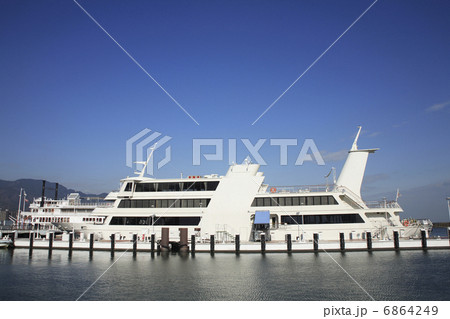 滋賀 大津 大津港 大津港護岸の旅客ターミナルと客船(晩春)