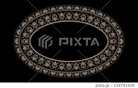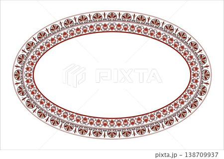 Ornate oval frame floral pattern. Traditional Eastern European, Mediterranean motif. Plate with arabesques. Ellipse frame Greek palmette ornament. Classic antique border for luxury label, textile