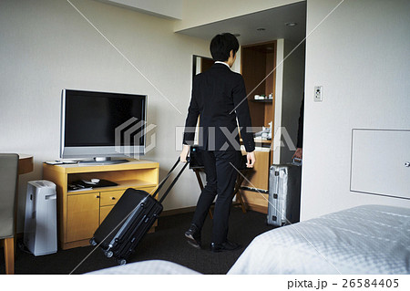 ホテル 部屋 ビジネスマン キャリーバック