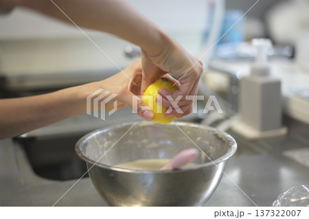 レモンを絞る子供の手