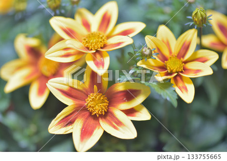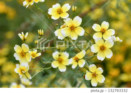 鮮やかな黄色のビデンスの花と蕾 線画なし