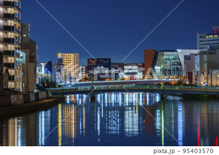大阪 伯楽橋から千代崎橋方面の夜景
