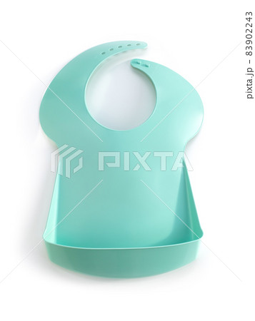 Mint green plastic baby bib isolated on white background. Mockup. Vertical photography.