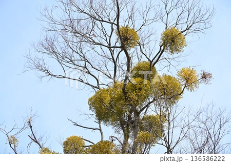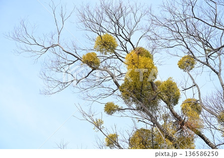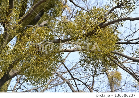宿主ソヨゴに寄生する木本性寄生植物 ヒノキバヤドリギ
