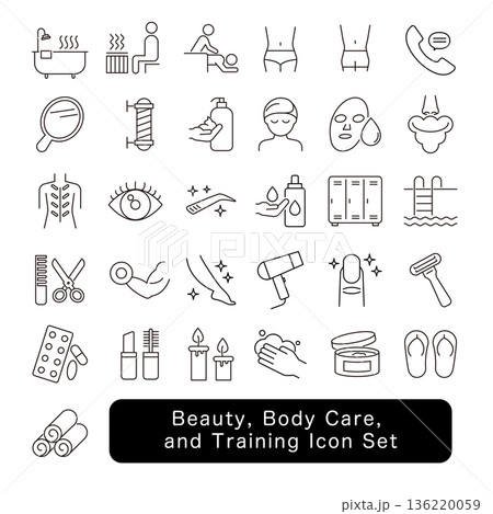 美容・ボディケア・トレーニングのアイコンセット|目・爪・マッサージ素材