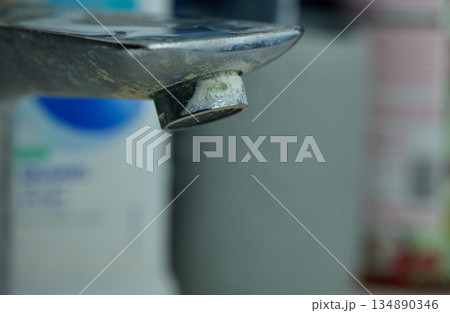 Close-up of Limescale and Calcium Build-up on Faucet. High quality photo