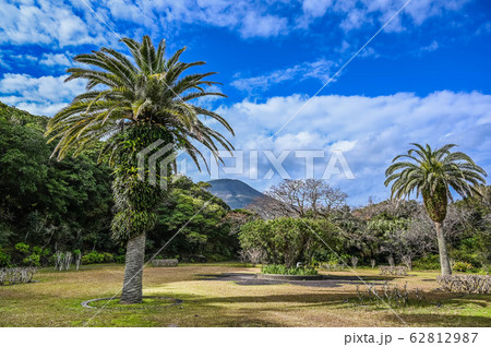 八丈島 植物公園 ビロウ広場と八丈富士