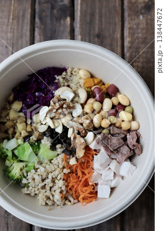 玄米入りのタンパク質たっぷりチョップドサラダ