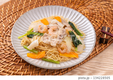 中国家庭料理・台湾炒米粉(炒り卵入り台湾ビーフン炒め)