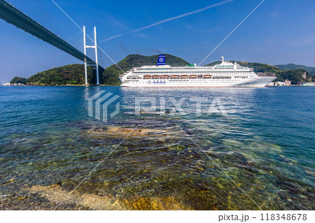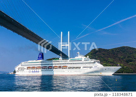 長崎港客船入港(Piano Land) 女神大橋通過【長崎市】