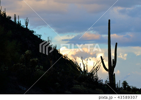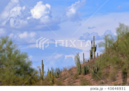 アリゾナのサボテンがある風景 弁慶柱 サワロ
