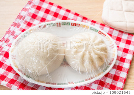 ふんわりラップしたレンチン前の中華まん