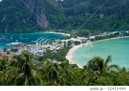 タイの離島ピピドン島のローダラムビーチを丘から望む