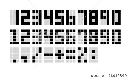 縁取りされたシンプルなドットの英数字と記号のセット アルファベット 文字 ピクセル フォント