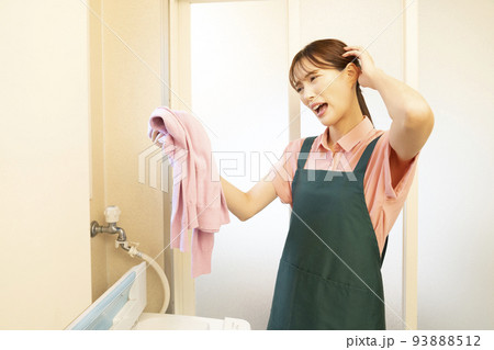 洗濯したセーターが縮んで悩む女性