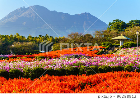有明の森フラワー公園のサルビアとコスモス パノラマ 【長崎県島原市】