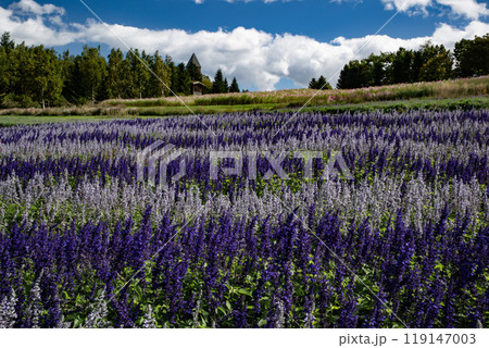 アメジストセージの花 お花畑 鮮やかな紫色のアメジストセージ イメージ素材