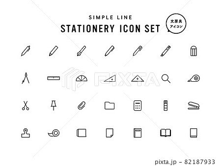 文房具のアイコンのセット シンプル 筆記用具 イラスト ステーショナリー ペン 書類 ノート 本