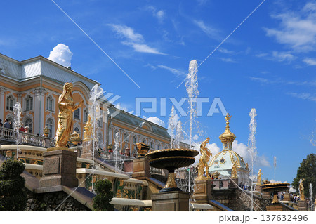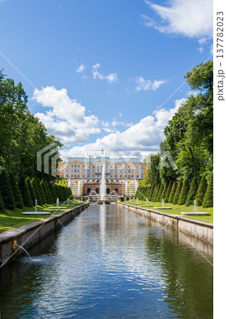 Grand Peterhof Palace and upper garden fountain in Saint Petersburg, Russia