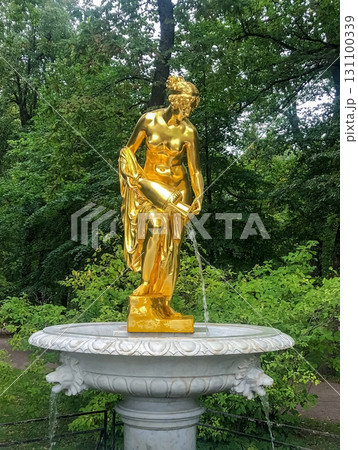 Golden sculpture statue and fountain, Peterhof city Saint Petersburg, Russia