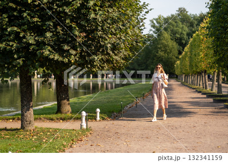 Delightful stroll among lush tree avenues at Peterhof gardens during a sunny day