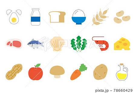 色々な種類の食品 栄養素のアイコンセット
