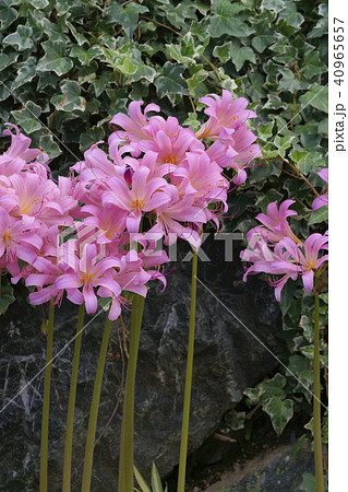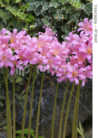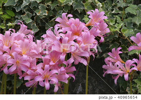 夏7月ピンクのナツズイセンの花